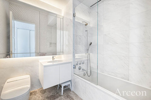 유명 건축가 데보라 버크(Deborah Berke)가 디자인한 인테리어는 우아함과 세련됨의 정수를 보여줍니다. 각 세대는 12피트가 소폭 넘는 마감된 천장, 개인 엘리베이터 승강장, 서비스 출입구, 창문이 있는 식사가 가능한 주방, 넓은 마스터 침실과 그 옆에 위치한 드레스룸을 갖추고 있습니다. 인테리어 마감재로는 솔리드 오크 바닥재, 맞춤 하드웨어, 그리고 최상의 품질을 자랑하는 천연 자재가 사용됐습니다. 창문이 있는 주방에는 화이트 래커 및 내추럴 오크 캐비닛과 Miele의 스테인리스제 식기류, Dornbracht의 기구, 마블 카운터탑 및 바닥재, 그리고 맨해튼의 스카이라인을 내려다보는 아침식사 공간이 있습니다. 넉넉한 공감감을 지닌 마스터 침실은 따로 분리되어 있으며 북매칭(book-matching) 작업이 된 슬래브가 있는 스타투아리오 마블 소재의 욕실 2개, 22인치 타원형 세면대가 있는 정육면체의 욕실용 화장대, 그리고 복사난방 시스템이 있습니다.